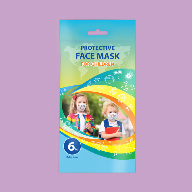 Детска маска за лице в по-малък размер, подходяща за вашите деца, в 6 различни, цветни десена.